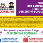 La prima ha come titolo “PRINCIPI E DISPOSIZIONE PER LA RIFORMA DELLA FINANZA PUBBLICA LOCALE” e si prefigge una profonda riforma della finanza locale, prevedendo il pareggio di bilancio sociale, ecologico e di genere, eliminando tutte le norme che oggi impediscono l’assunzione del personale, reinternalizzando i servizi pubblici a partire dall’acqua, difendendo suolo, territorio, beni comuni e patrimonio pubblico e dando alle comunità territoriali strumenti di autogoverno davvero partecipativi e inclusivi.