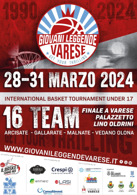 Vedano Olona, tuttavia, sarà contemporaneamente uno delle cinque sedi del Torneo Giovani Leggende Varese, insieme ad Arcisate, Gallarate, Malnate e Varese, un evento destinato ai ragazzi Under 16 e nato nel 1990, in memoria di Sergio Rizzi, poi diventato “Memorial Graziano Barilà”. Il torneo Giovani Leggende è in programma dal 28 al 31 marzo e al palasport Mario Porta sono in calendario gli incontri di qualficazione della Red Conference, girone di cui fanno parte Borgomanero, Bernareggio, Stella Azzurra Roma e Orobica Bergamo. Gran finale al Palasport Lino Oldrini di Varese domenica 31 marzo (ore 20).
