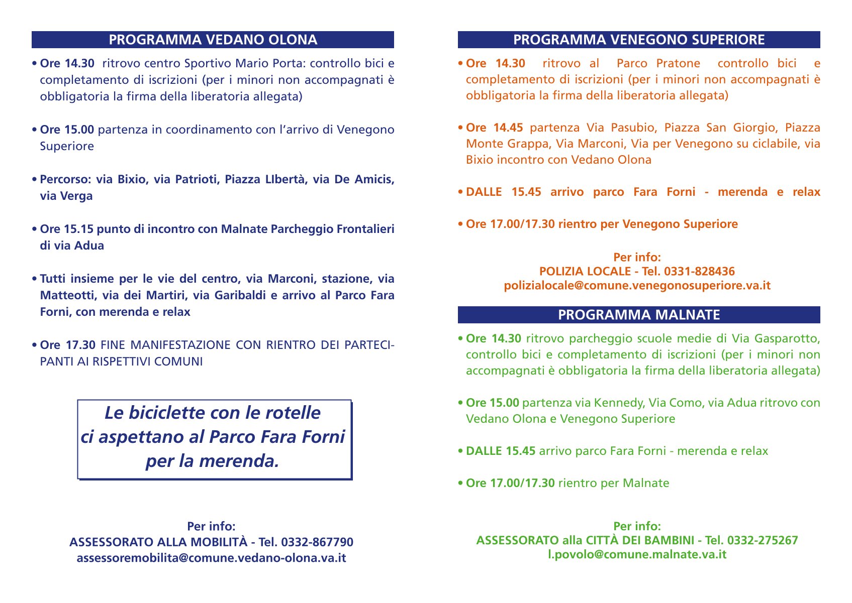 Tutti in bici: appuntamento a Vedano Olona sabato 18 maggio