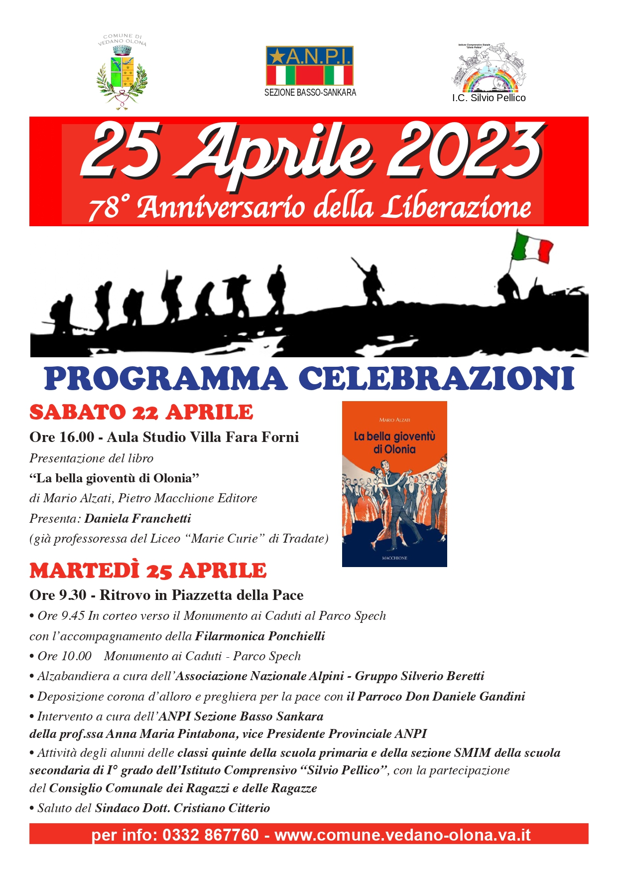 Si avvisa la cittadinanza che martedì 25 aprile, in occasione del 78° Anniversario della Liberazione, si svolgerà la commemorazione con ritrovo alle ore 9.30 in Piazzetta della Pace. scarica qui il programma