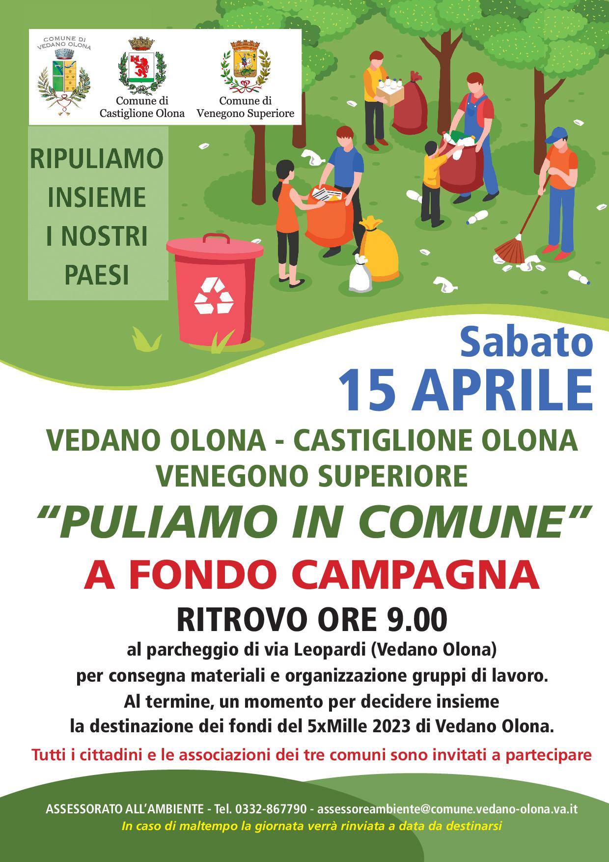 Una giornata dedicata all’ambiente, tutti insieme a pulire e restituire alla natura un po’ di respiro. “Puliamo in comune” è un’iniziativa concertata tra il Comune di Vedano e quelli di Castiglione Olona e Venegono Superiore e rivolta a cittadini ed associazioni del territorio. “Ripuliamo insieme i nostri paesi” è lo slogan con cui si svolgerà […]