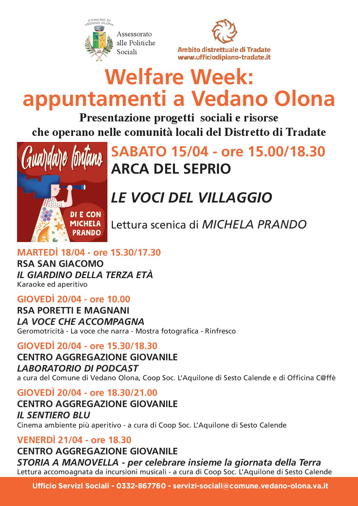 Prosegue a pieno ritmo il cartellone di eventi e appuntamenti della Welfare Week 2023, coordinato dal Distretto di Tradate e con la collaborazione dell’assessorato alle Politiche Sociali del Comune di Vedano Olona. Dopo gli eventi che si sono tenuti domenica scorsa ad Arca del Seprio, è in programma a Vedano un doppio appuntamento Open Day […]