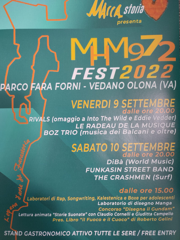 Venerdì 9 e sabato 10 settembre, Parco Fara Forni: musica, stand gastronomico, laboratori di disegno, letture animate.