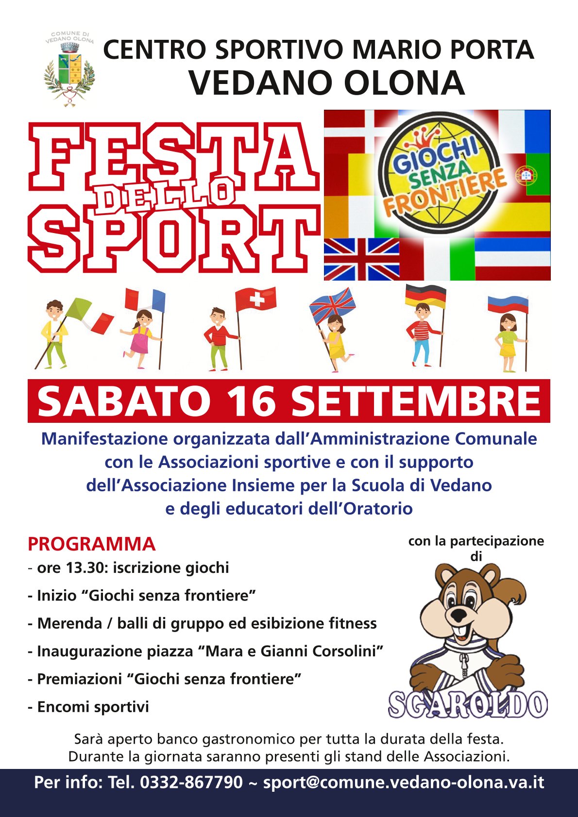Tutto è pronto a Vedano Olona per la tradizionale Festa dello Sport, in programma sabato 16 settembre presso il Centro Sportivo “Mario Porta”. L’appuntamento è organizzato dall’Amministrazione Comunale insieme alle Associazioni sportive e con il supporto dell’Associazione “Insieme per la Scuola” di Vedano e degli educatori dell’oratorio. In questa edizione il programma della manifestazione, che […]